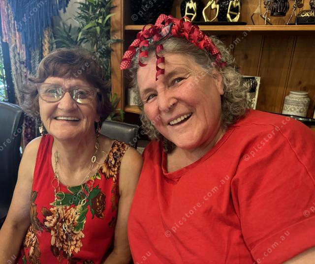 379639_02 Beaudesert Quilters members Julie Nowland and Joanne Craig looking festive. Picture: Larraine Sathicq