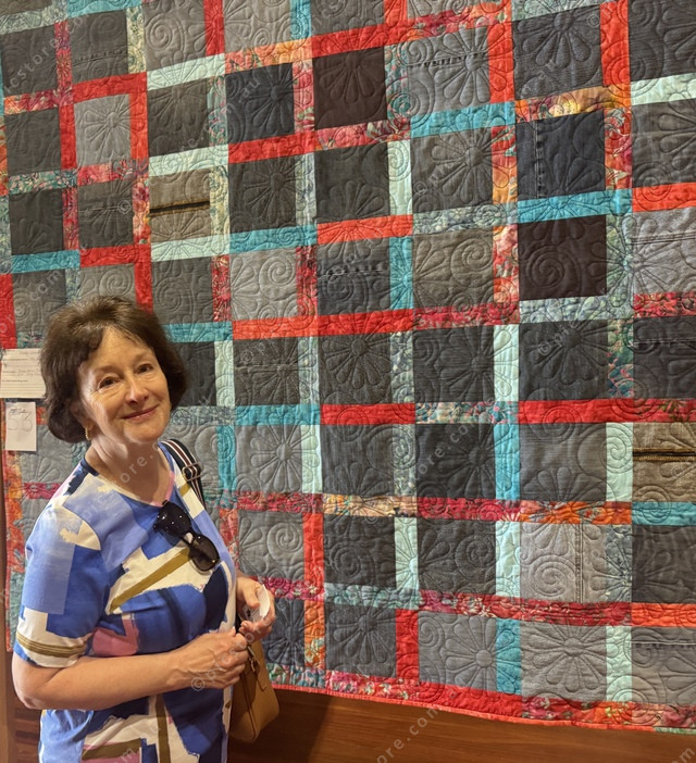 Patricia Varnam admiring a quilt at the annual show. (Larraine Sathicq: 467247_11)