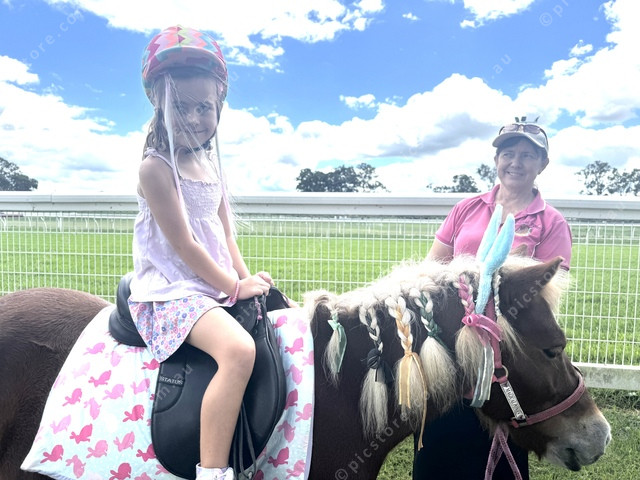 398661_02 Annabella Cheyne, 6,having a pony ride at the Beaudesert racetrack. Picture: Larraine Sathicq