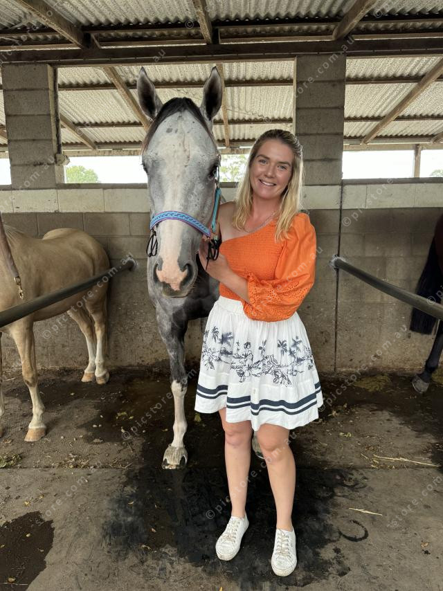 Trainer Ruby Chatterton with her horse Prometio Mas ready for race 4 at Beaudesert. (Picture supplied)