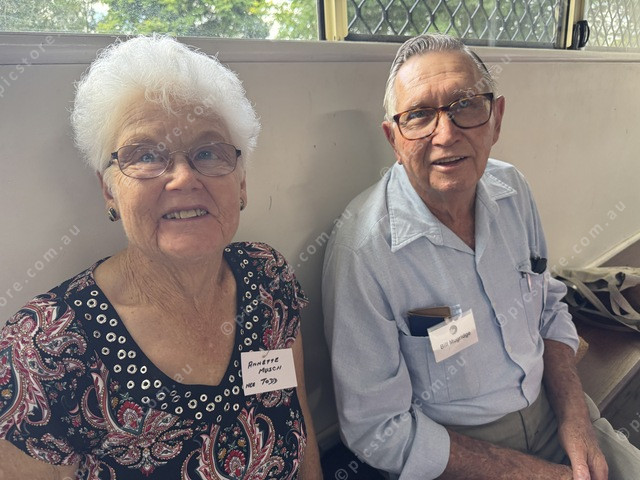 Annette Musch and Bill MUgridge chat about their primary school days at Tamrookum. (Larraine Sathicq: 465807_10)