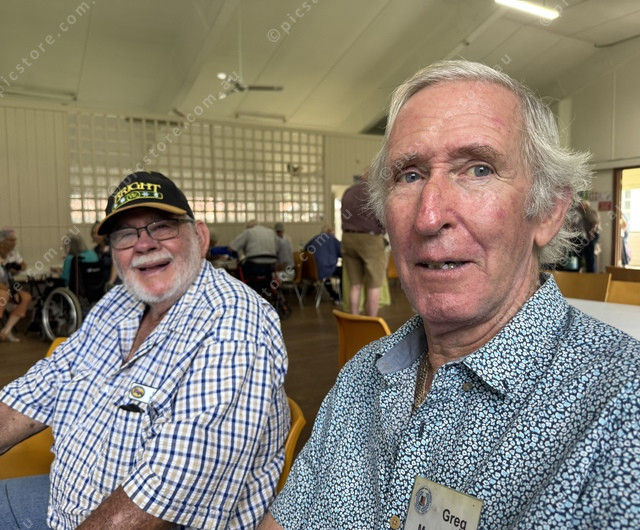 Don Bright and Greg Mugridge catch up at the Beaudesert Reunion. (Larraine Sathicq: 465807_11)