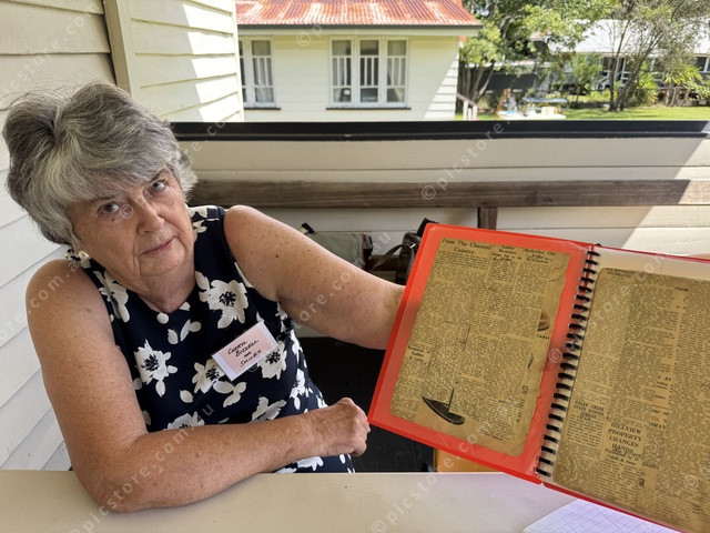 Cheryl Bizzell with cutting from the Beaudesert Times about the annual reunion. (Larraine Sathicq: 465807_23)
