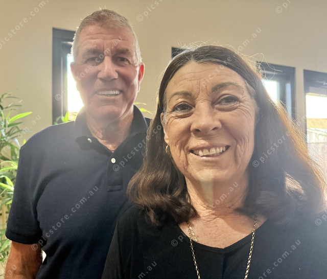 High school sweethearts Peter and Debbie Tomkins at the 2025 Beaudesert High School 1969-1973 reunion. (Larraine Sathicq: 509773_01)