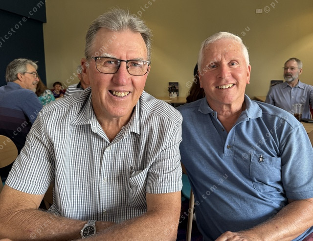 John Reid with his old mate Peter Drynan at The Club Beaudesert. (Larraine Sathicq: 509773_07)