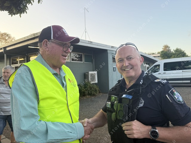 YACC president John Powell with Senior Sergeant Ken Murray at Beaudesert State High Schoo. (Larraine Sathicq: 504332_02)