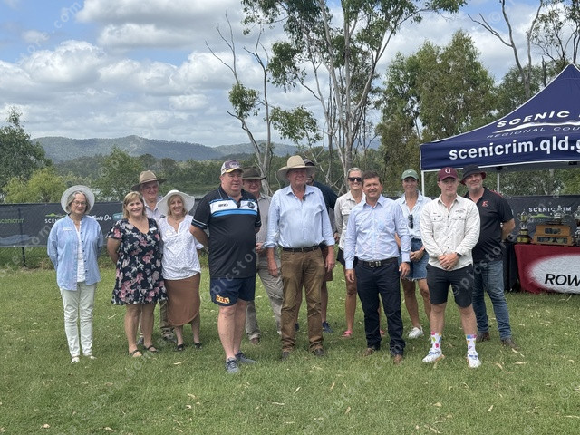 Scenic Rim Mayor Tom Sharp with federal MP Scott Buchholz, State MP Jon Krause, councillors and Rowing Queensland representatives. (Larraine Sathicq: 455567_01)