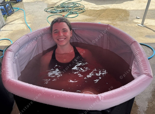 Nell Murphy enjoys an ice bath after competing in the State Rowing Championships. (Larraine Sathicq: 455567_05)