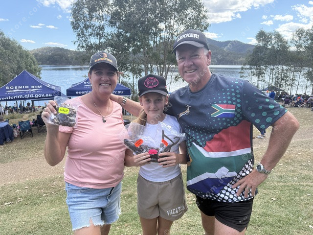 The Evans family, Charmaine, Missouri (11) and Dave from the Beaudesert Biltong shop did a roaring trade at the rowing regatta. (Larraine Sathicq: 505077_06)