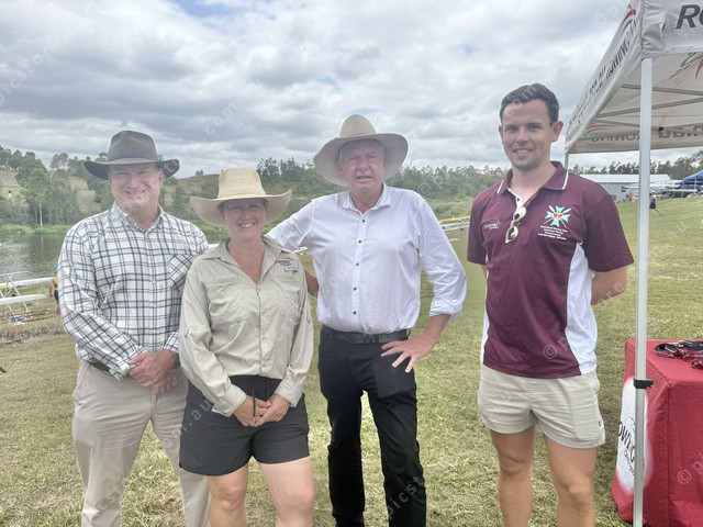 Cr Steve Moriarty, Rowing Queensland CEO Anthea O’Loughlin, Mayor Tom Sharp and Rowing Queensland board member Jack Armitage at the State Championships. (Larraine Sathicq: 530472_21)