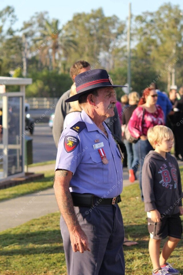 Firefighter Tom Tait pays his respects on Anzac Day. (Picture supplied)