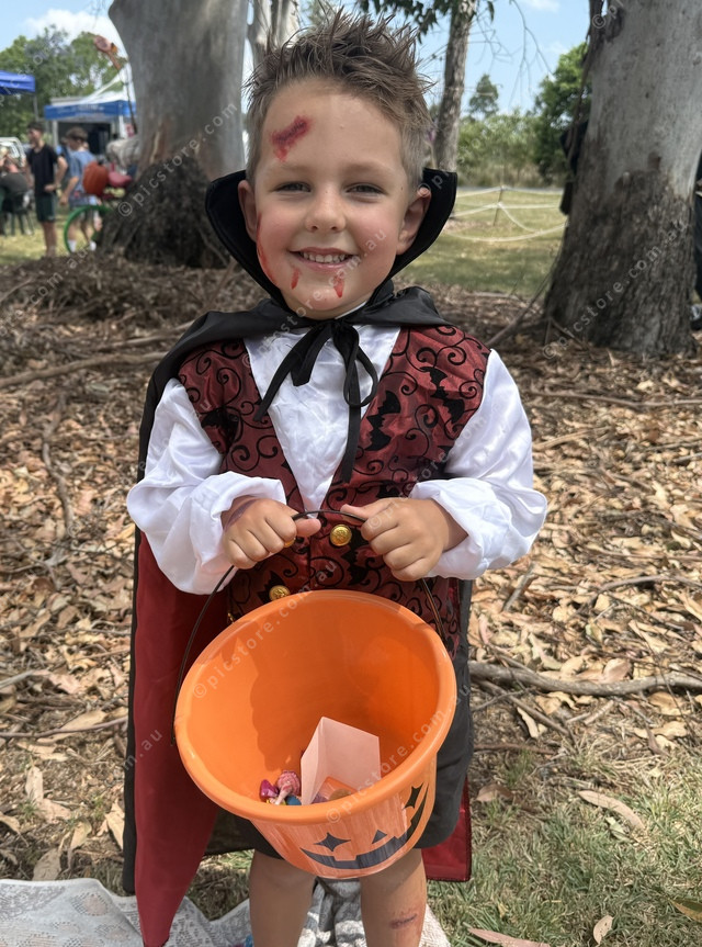Ace Salach, 4, came to the Kooralbyn Halloween scarecrow event dressed to impress. (Larraine Sathicq: )512952_01