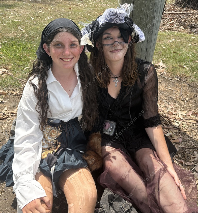Sister pirates Zarlie and Larna Milton at the Kooralbyn lagoon Halloween event. (Larraine Sathicq: 512952_02)