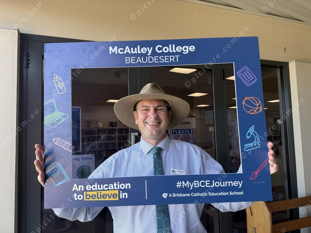McAuley College principal Jason Pacey greeted students as they arrived for their first day of high school. (Larraine Sathicq: 531449_02)