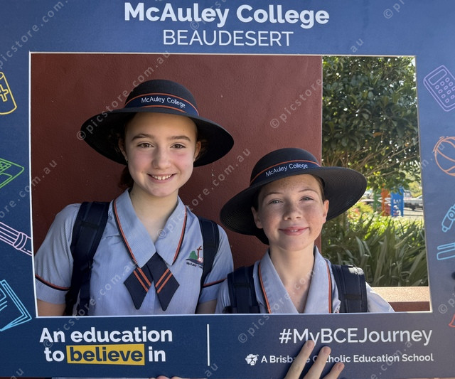 Lucie Currie and Ariel Glissan joined their year 7 classmates at McAuley College on the first day of school. (Larraine Sathicq: 531449_11)