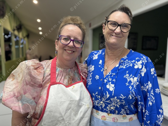 Kylie Priest and Lana Lockett ready to serve supper to Showgirls and guests. (Larraine Sathicq: 470258_02)