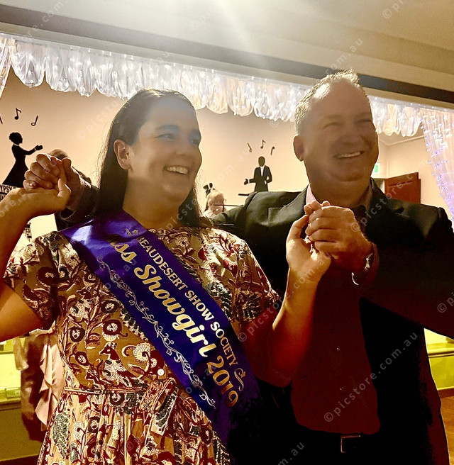 Caitlyn Watt dances with Cr Steve Moriarty at Tamrookum Hall. (Larraine Sathicq: 470258_23)