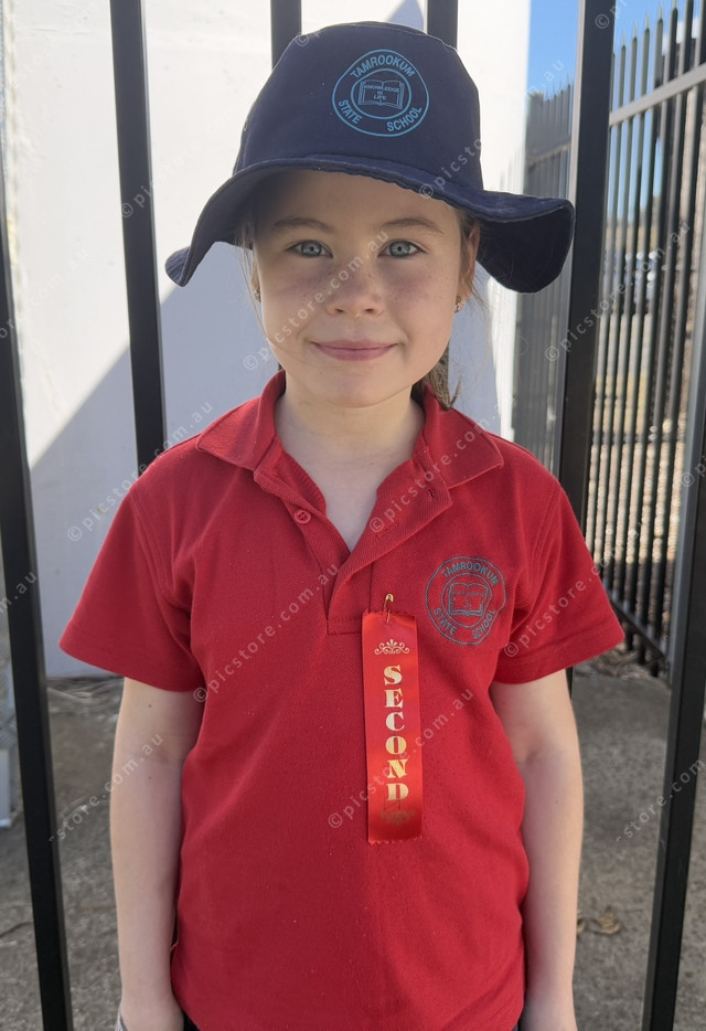 Skylar Brown, 7, proudly wearing her first ever sports ribbon. (Larraine Sathicq: 494838_04)