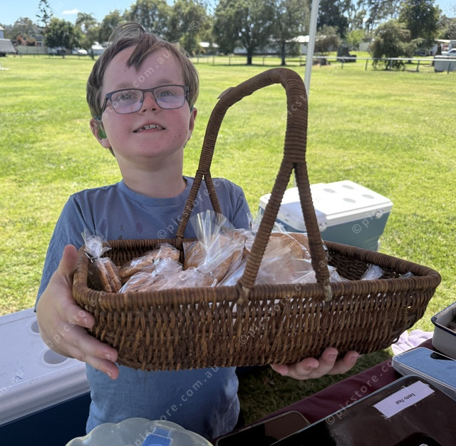Phenix Jobson, 7, was proud of the cookies he made for the Rathdowney State School stall at the Spring Fair. (Larraine Sathicq: 505065_12)