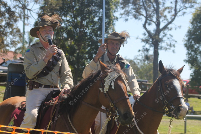 The Darling Downs 11th Light Horse troop’s Richard Howard and Chris Rowan demonstrated mounted swordsmanship at the Spring Fair. (Larraine Sathicq: 505065_15)