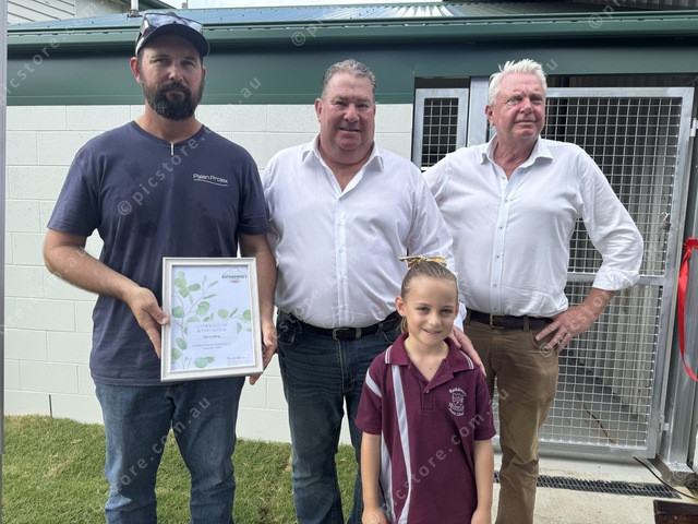 Tim Ludwig of Palen Projex with Scott Buchholz MP, Mayor Tom Sharp and Rathdowney State School student Lucy Oelmann. (Larraine Sathicq: 467249_08)