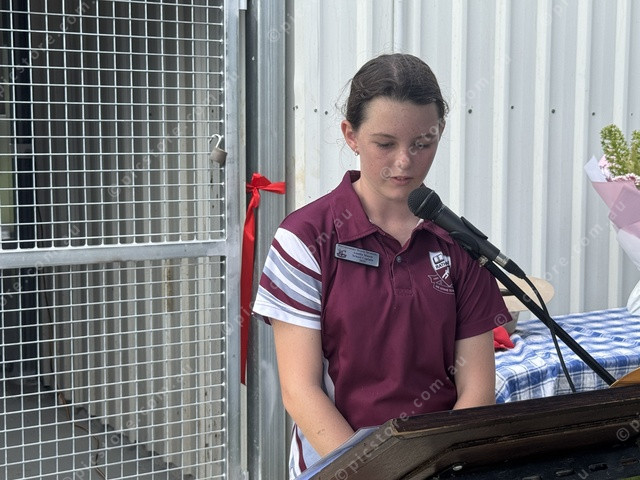 Rathdowney State School captain Amelia Masen gives a speech about her hopes for the future. (Larraine Sathicq: 467249_09)