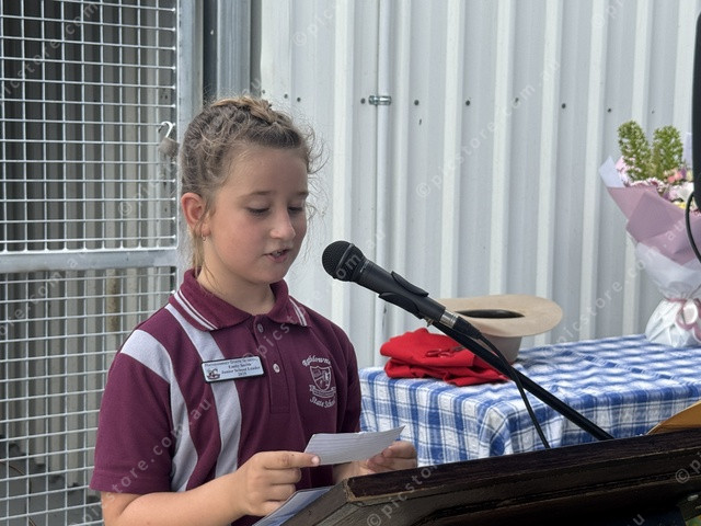 Junior school leader Emily Smith proved a worthy orator before a crowd at Rathdowney Memorial Grounds. (Larraine Sathicq: 467249_11)