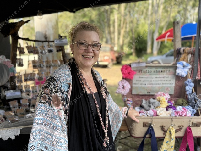 Carmelle Gricks had upcycled clothing, jewellery and accessories on offer at her Tommerup’s Bush Christmas market stall. (Larraine Sathicq: 522939_06