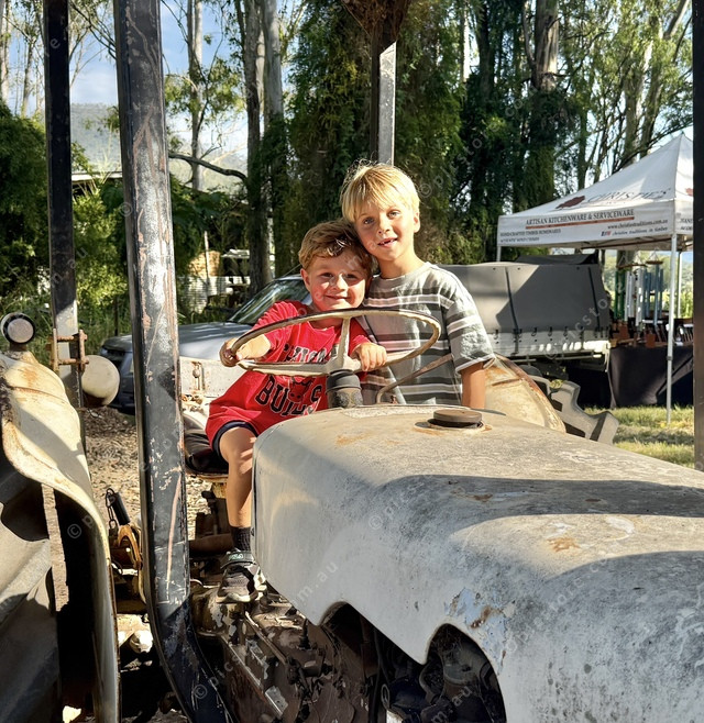Brotherly love, Levi (4) and Sam (6) Baker on the Tommerup’s tractor. (Larraine Sathicq: 522939_08)