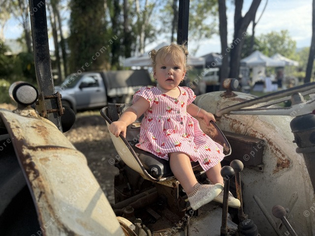 Maisie Lunsden, 1, loved sitting on the Tommerup’s tractor at the Bush Christmas event. (Larraine Sathicq: 522939_09)