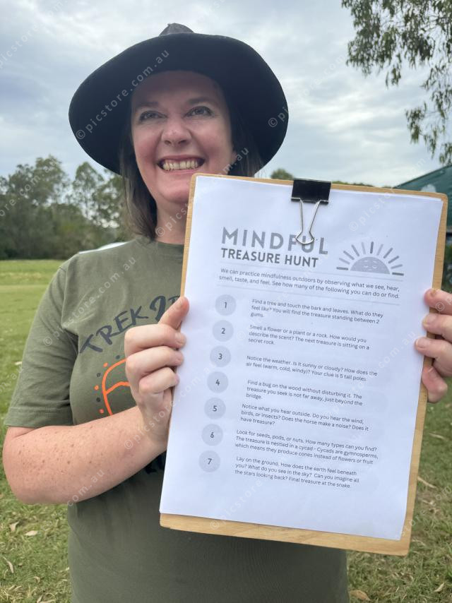 Lizz Hills briefs walkers ahead of the treasure hunt mission. (Larraine Sathicq: 455636_01)