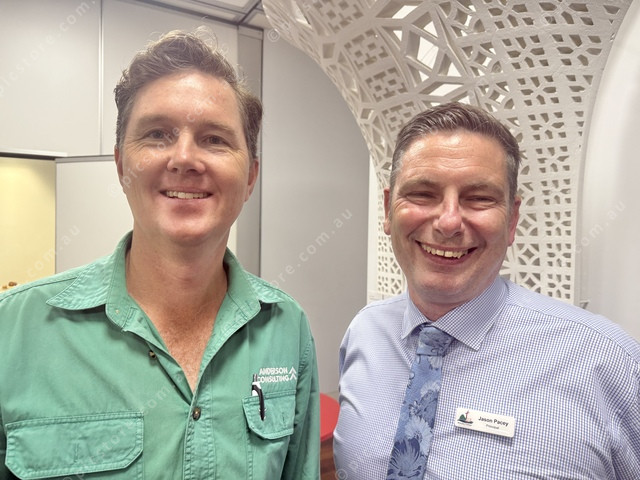 Chris Anderson from Chris Anderson Consulting with McAuley College Principal Jason Pacey. (Larraine Sathicq: 509951_04)