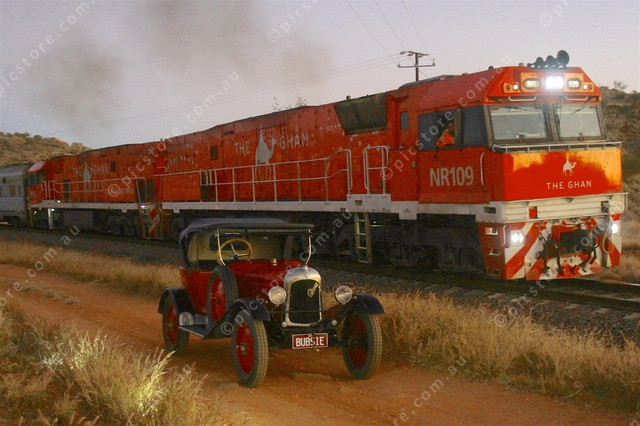 JOURNEY: Bubsie is passed by the Ghan as the train makes its way to Darwin. (PIC: PHIL WILLIAMS 490890_14)