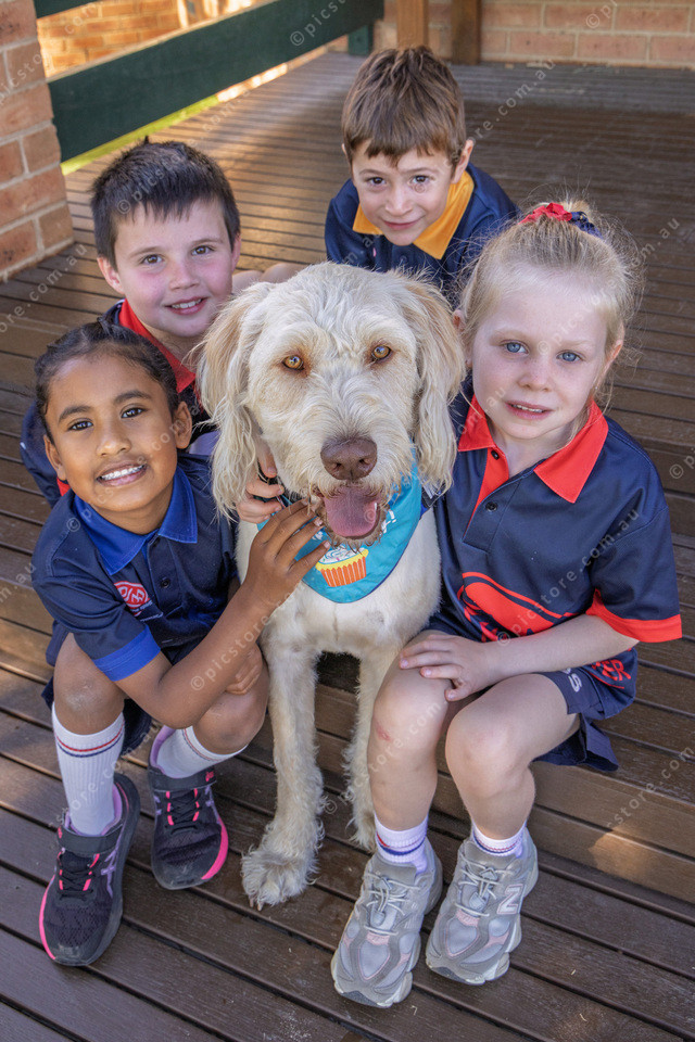 L-R Alesha, Huxley, Archer and Sadie around Buddy.