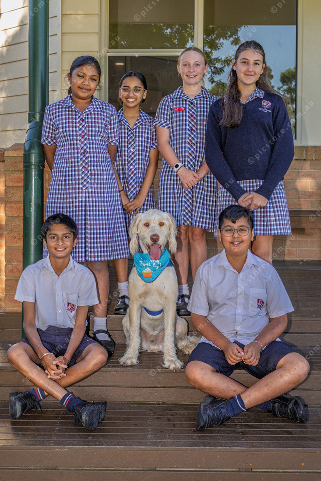 Year 6 students with Buddy.