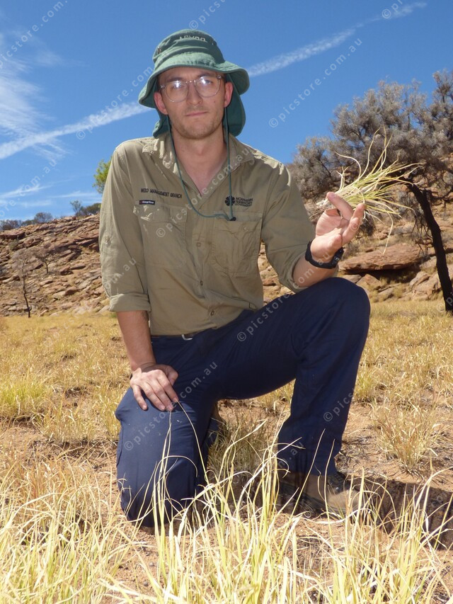 WEED: Buffel Grass Officer Max Arkley-Smith in an area where he will be looking to combat existing Buffel grass. (Charles Geary: 465343_02)