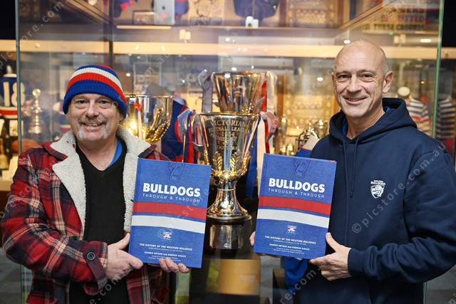Andrew Gigacz and Darren Arthur have co-authored a book on the Footscray/Western Bulldogs 100 year history. Photo by Damjan Janevski. 489324_01