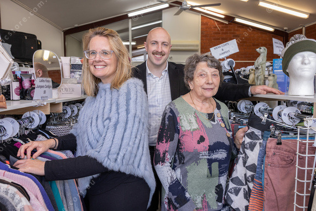 L-R Cr Alanna Pomeroy (Deputy Mayor), Robyn Johnson (President Bunyip Op-Shop) and Cr Jack Kowarzik (Mayor).