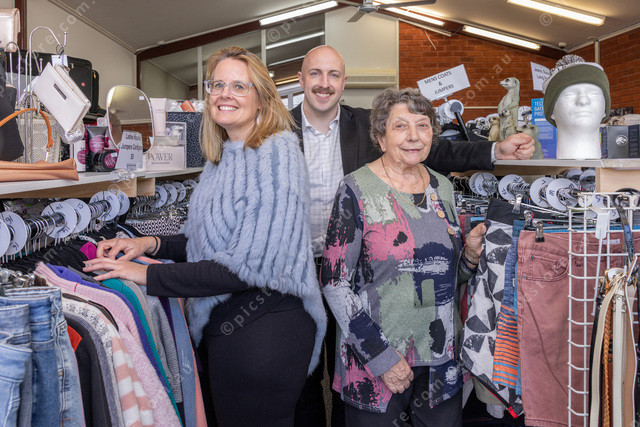 L-R Cr Alanna Pomeroy (Deputy Mayor), Robyn Johnson (President Bunyip Op-Shop) and Cr Jack Kowarzik (Mayor).