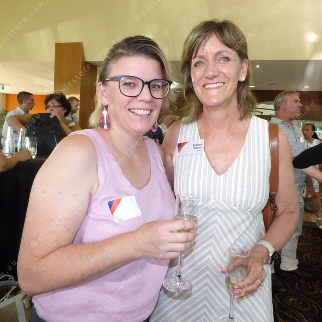 SUNSET: Naomi Hunter and Eileen Breen catching up at the Alice Springs Convention Centre. (Charles Geary: 457853_06)