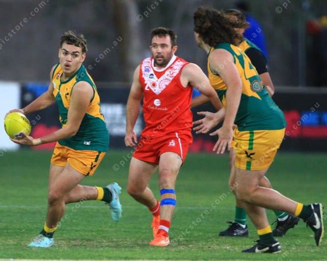 OUTNUMBERED: Abraham Ankers is outnumbered as a trio of Eagles clear the ball. (PIC: PHIL WILLIAMS 500950_16)