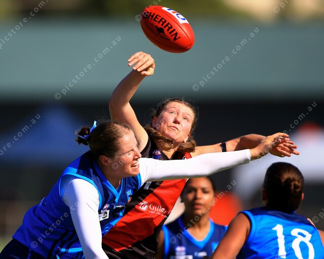 PUNCH: A Blood’s player spoils the footy in the side’s loss to Rovers in the 2024 senior women’s grand final. (Phil Williams: 430446_10)