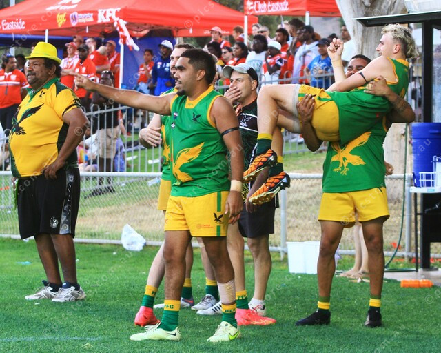BENCH: The boys got off their chair to celebrate the Pioneer’s premiership win in the senior men’s grand final. (Phil Williams: 430446_14)
