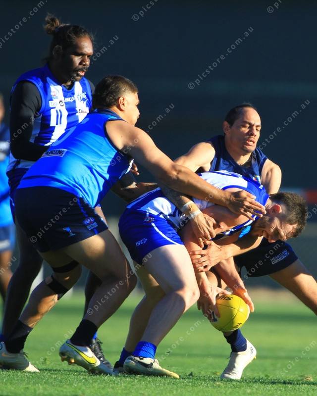 TACKLED: Rovers players wrap up their Souths opponent in a solid tackle. (PIC: PHIL WILLIAMS 500939_06)