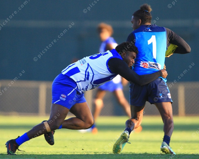 HIT: Lucas Ross takes a heavy hit from Jerome Dickson. (PIC: PHIL WILLIAMS 500939_14)