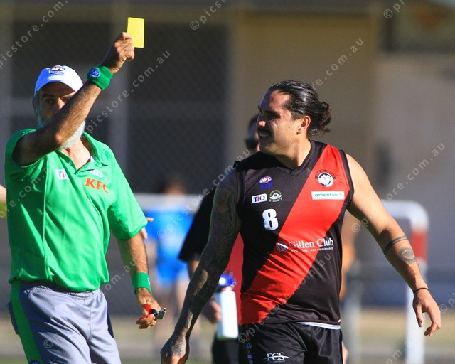 YELLOW CAED: Umpire Phil Nippress enforces the send of rule. (PIC: PHIL WILLIAMS 487143_07)