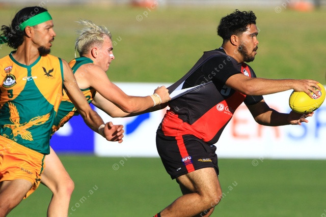 SLOWED: Nelson Anders grabs Jayden Forbes as he tries to clear. PIC: PHIL WILLIAMS 487143_17)
