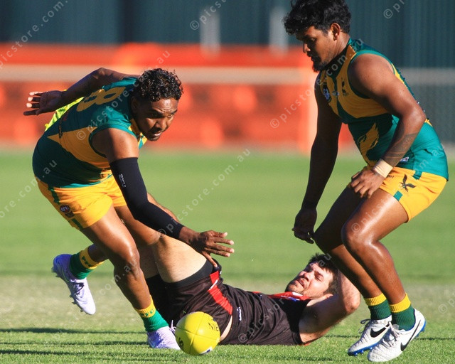 PIonners players chase a loos ball as their West opponent goes to ground. (PIC: PHIL WILLIAMS 487143_19)