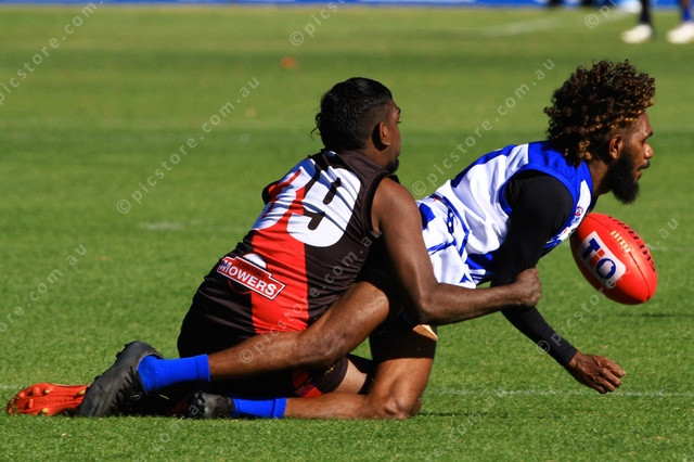 SPILL: Shannon Brumby spills the ball after being caught by a Wests player early in the A Grade game. (PHIL WILLIAMS 488301_13)