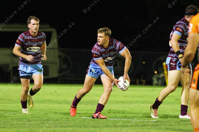 Harrison Graham looks for a pass out of dummy-half.